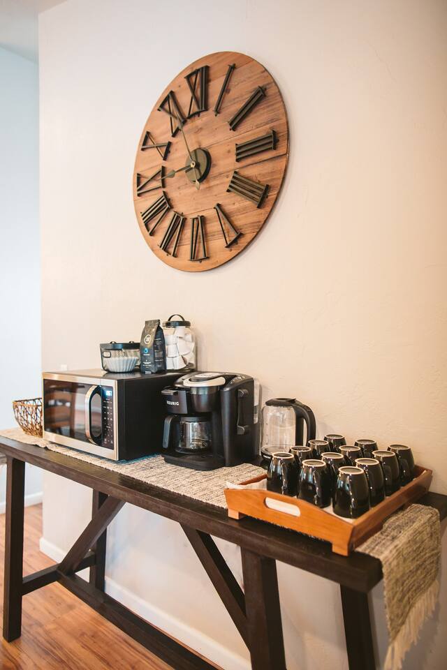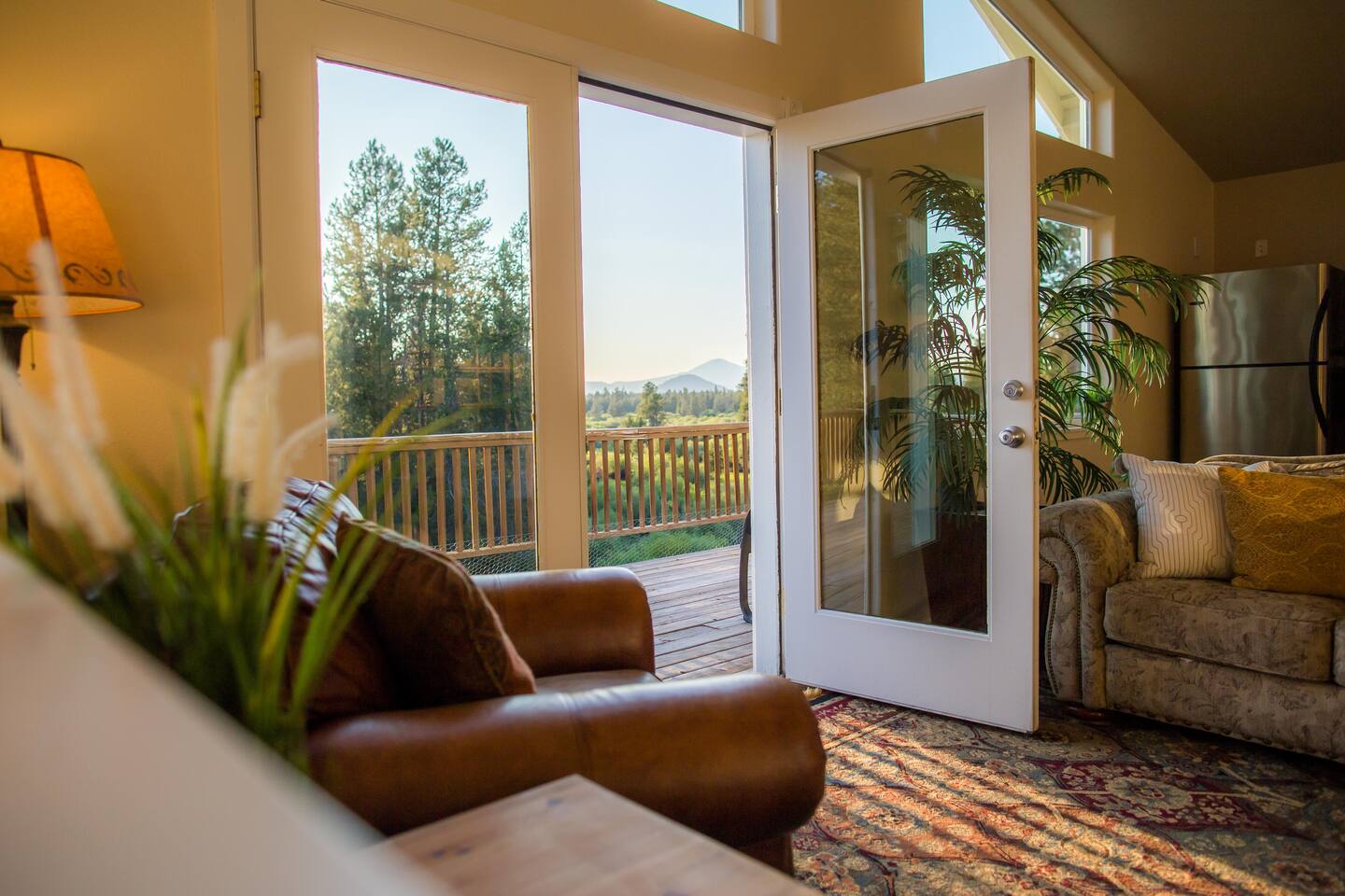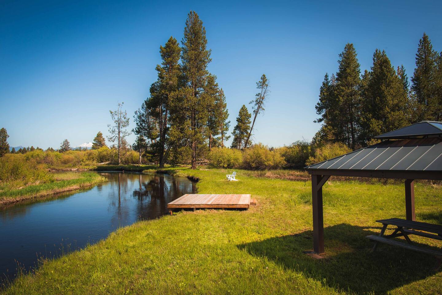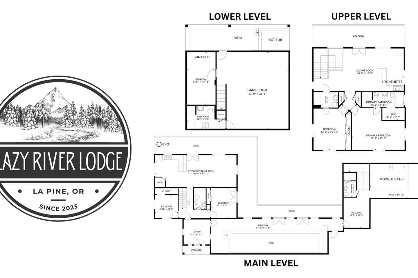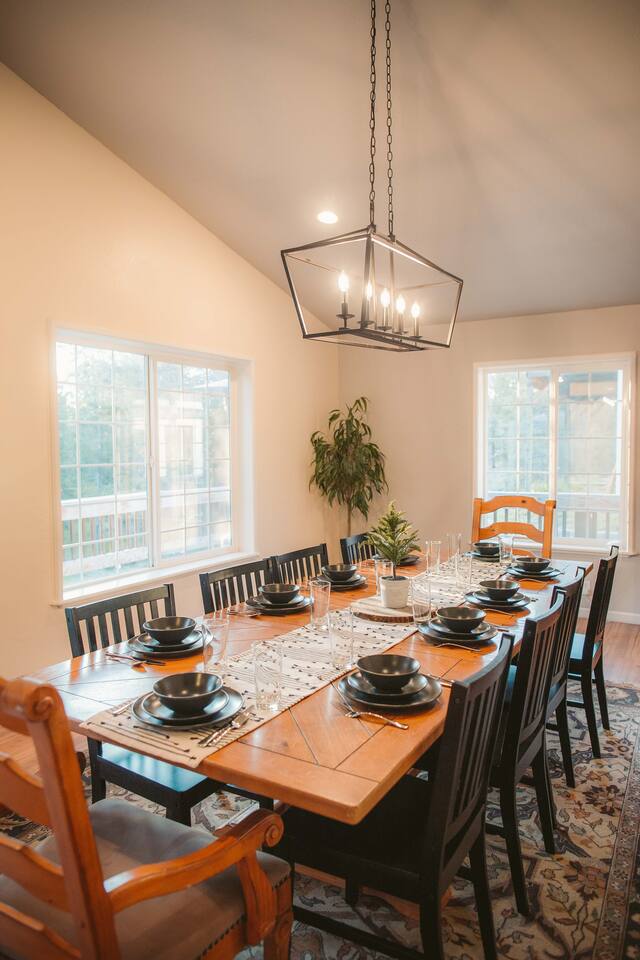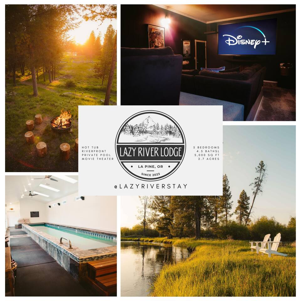 The Lazy River Lodge is within minutes to the Sunriver Resort, but lacks the crowds and nosy neighbors, making it the ultimate Central Oregon vacation spot! Your private 5,000 square foot Lodge features 5 bedrooms with 8 beds and 4.5 bathrooms - perfect for up to 14 guests and with 24-hour check-in. This home makes for the perfect corporate retreat in a quiet neighborhood surrounded by stunning mountain views and river frontage. Here is a breakdown of the rooms so you know exactly what to expect! Bedrooms: Each bedroom has high-quality memory foam beds so you can sleep like royalty and plenty of storage space for your belongings so you can unpack and feel at home. The Primary bedroom in this home is huge with a king-sized bed, ensuite bathroom even a jacuzzi spa tub! So let your body relax with a bath bomb and a good book, letting the massaging jets work their magic. Bedroom two has a queen bed, en suite bathroom and ample space! Bedroom three has a queen-sized bed and a twin bunk bed. Bedrooms four and five each have a queen bed Bathrooms: With four and a half bathrooms in the house, you’ll never have to worry about a long wait for the shower. Each bathroom is stocked with toiletries like shampoo, conditioner, body wash for your convenience and a “forgot it” kit just in case it slipped your mind to bring that toothbrush. There are both walk-in showers and tub/shower combos so if any kiddos need a bath after a fun day of exploring or swimming in the pool, you’ll have the ability to get them squeaky clean! Kitchen: The kitchen is fully equipped for any meals you choose to stay in for. Take advantage of the fridge and freezer, stove and oven, microwave, toaster, Keurig coffee machine, pots and pans, full dining sets, and dishwasher for easy cleanup. The dining room table has enough seats for up to ten guests with additional barstools at the kitchen’s island for three more. Need more cooking space? We even have a smaller kitchen area in the upstairs living room above the garage. With an additional refrigerator and freezer, another microwave, and plenty of room, you will be able to cook or prep and have the extra space you need! Living room and bonus room: There are two living rooms, one upstairs and one in the basement. The upstairs living room above the garage has a beautiful view of the mountains through large windows and glass French doors leading out to the private deck. There are two comfortable sofa chairs and a larger couch. This living area also has a private desk for anyone that needs to get some work done while they’re away. High-speed wifi is connected throughout the home so you won’t have to worry about lags or dropouts. The downstairs area is a large family room/game room with a couch that can fit the whole family and a queen size murphy bed. Spend the evenings playing on the shuffleboard, have some friendly competition, or sit around with some drinks and enjoy the night. There is plenty of room for the kids to have their own area to play, while the adults enjoy each other's company. Our home theater is always a guest favorite! There is a large projector screen on one wall with two rearrangeable sofas facing it. Keep them set up as a couch, or add in the middle sections to make a comfortable bed to watch your favorite movies on. The theater is equipped with surround sound to give you the best viewing experience. The indoor pool is another guest favorite! And how could it not be?? The pool is heated to about 85 degrees and has plenty of fun pool toys including pool noodles and floats for the little ones that might need some help in the water. Please note that you will be swimming at your own risk and there should be an adult present any time children are in the pool area. Tired from a long day exploring in the mountains? We also have a hot tub for you to enjoy during your visit! Outside: The home sits on 2.7 private riverfront acres as your backyard and all to yourselves. The Lazy River Lodge is perfect for families or groups due to it's living space separation. With the main home on one side of the pool room and apartment on the other, each group can have their own space while still being together. Take a lovely stroll down the hill, where you’ll find our gazebo picnic area and a dock directly on the Little Deschutes River! Bring your own floatation devices or paddle-boards for a pleasant 1.5 - 2 hour float carrying you to the La Pine State Park (just a 13 min pick up drive from the home) On the 2.7 acres, you have access to the home, free private parking, a fire pit, dock and gazebo on the river. It’s easy to spend all afternoon and evening enjoying the space and all it has to offer. Relax with your favorite book under the gazebo, sip your morning coffee on the deck, sit and watch all the wildlife from almost anywhere on the property. Take a stroll along the river, have a campfire in the evening and roast some marshmallows while you reminisce Front Entrance: You'll find the front door along the left side of the home. There is a well-lit path to the entrance that lights up with a motion light as you walk towards the door. Access is with a keyless entry pad that offers a personalized code for each guest so you can feel safe knowing that any previous guest codes have been deleted.